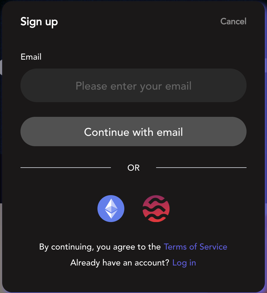 <figure><img src="https://968300666-files.gitbook.io/~/files/v0/b/gitbook-x-prod.appspot.com/o/spaces%2FP2rTAxVwynleD83BBDV3%2Fuploads%2FbIv0Gfu5h5dAVas8VHwz%2Fimage.png?alt=media&#x26;token=0e8f6ecd-730b-4a5d-a48d-cf79f163ada6" alt="" width="375"><figcaption><p>Sign up</p></figcaption></figure>